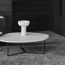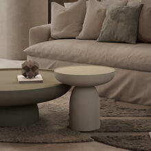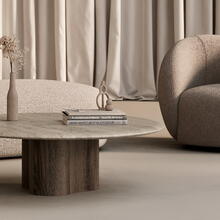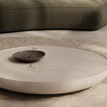 De ronde vorm en massieve uitstraling zorgen voor balans en harmonie, terwijl het ambachtelijk materiaal elke tafel uniek maakt. Ook kleiner leverbaar: 90 diameter x 35 hoog € 759,-