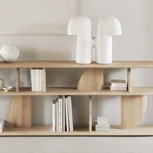 Dressoir Floow van Bolia dankt zijn naam aan het feit dat hij lijkt te zweven op z'n onderstel. Z'n hoogwaardige kwaliteit zit hem onder andere in de prachtig afgewerkte details, zie overige foto's. Het houten gedeelte is mogelijk in eiken of walnoot. Tevens kleiner leverbaar, 136cm breed.