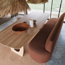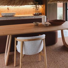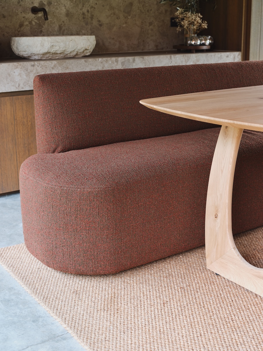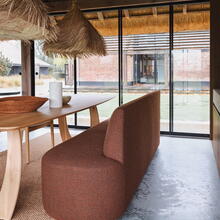 De elegante eetbank Lorreda brengt rust en verfijning in elke eetruimte. Het organische silhouet en de afgeronde vormen geven de bank een sculpturale uitstraling, terwijl de zachte, licht getextureerde stof zorgt voor een warme en uitnodigende sfeer. De doorlopende zitting en subtiel gevormde rugleuning bieden comfortabel zitgemak, perfect voor lange diners en gezellige momenten aan tafel. Leverbaar in zeer veel afmetingen. Ook als hoekbank mogelijk, zie foto's. Mogelijk in meer dan 800 stoffen.