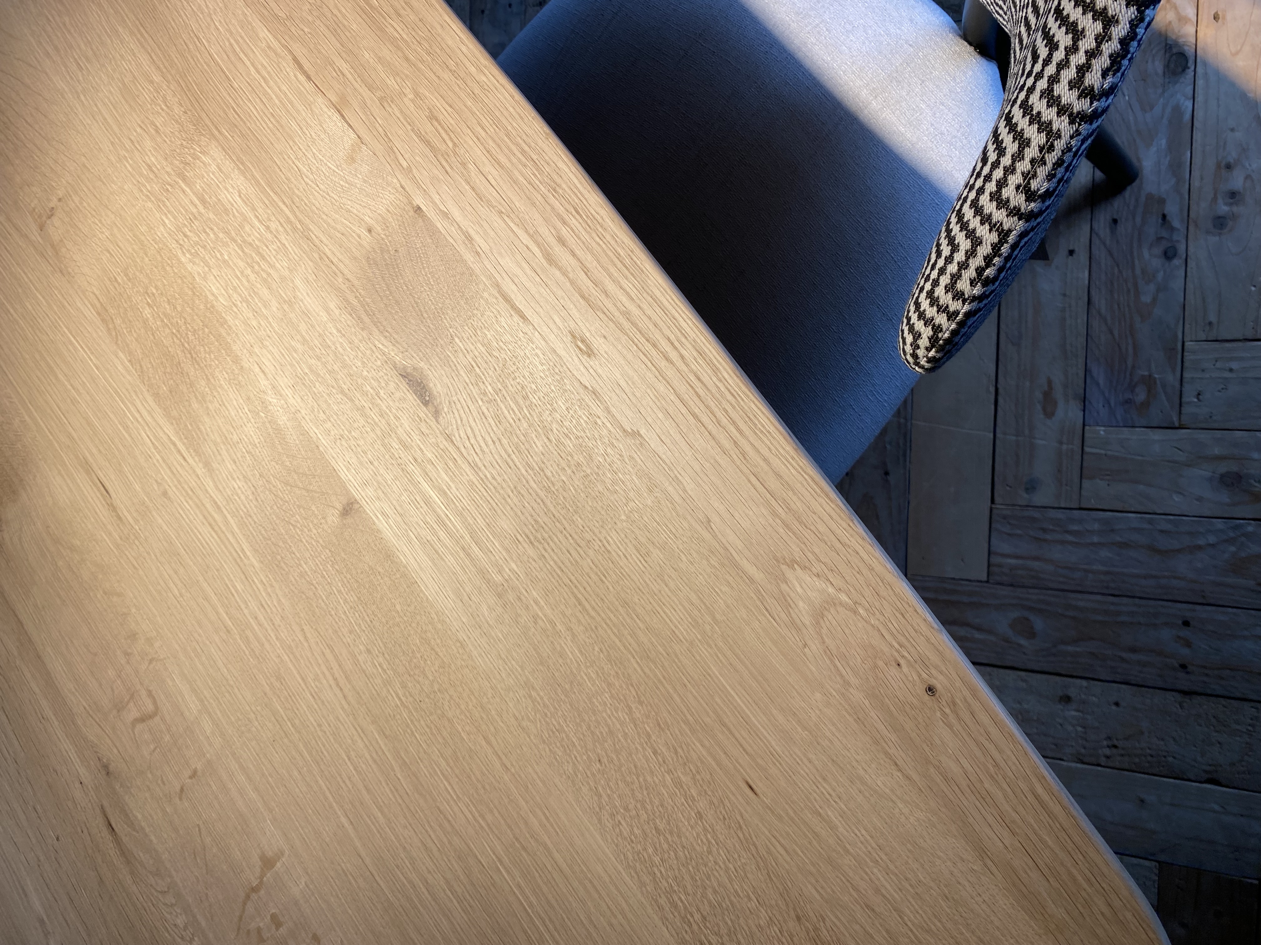 Uitgevoerd in Skylt massief eiken, met verjongde rand en poottype Cavallo small.