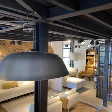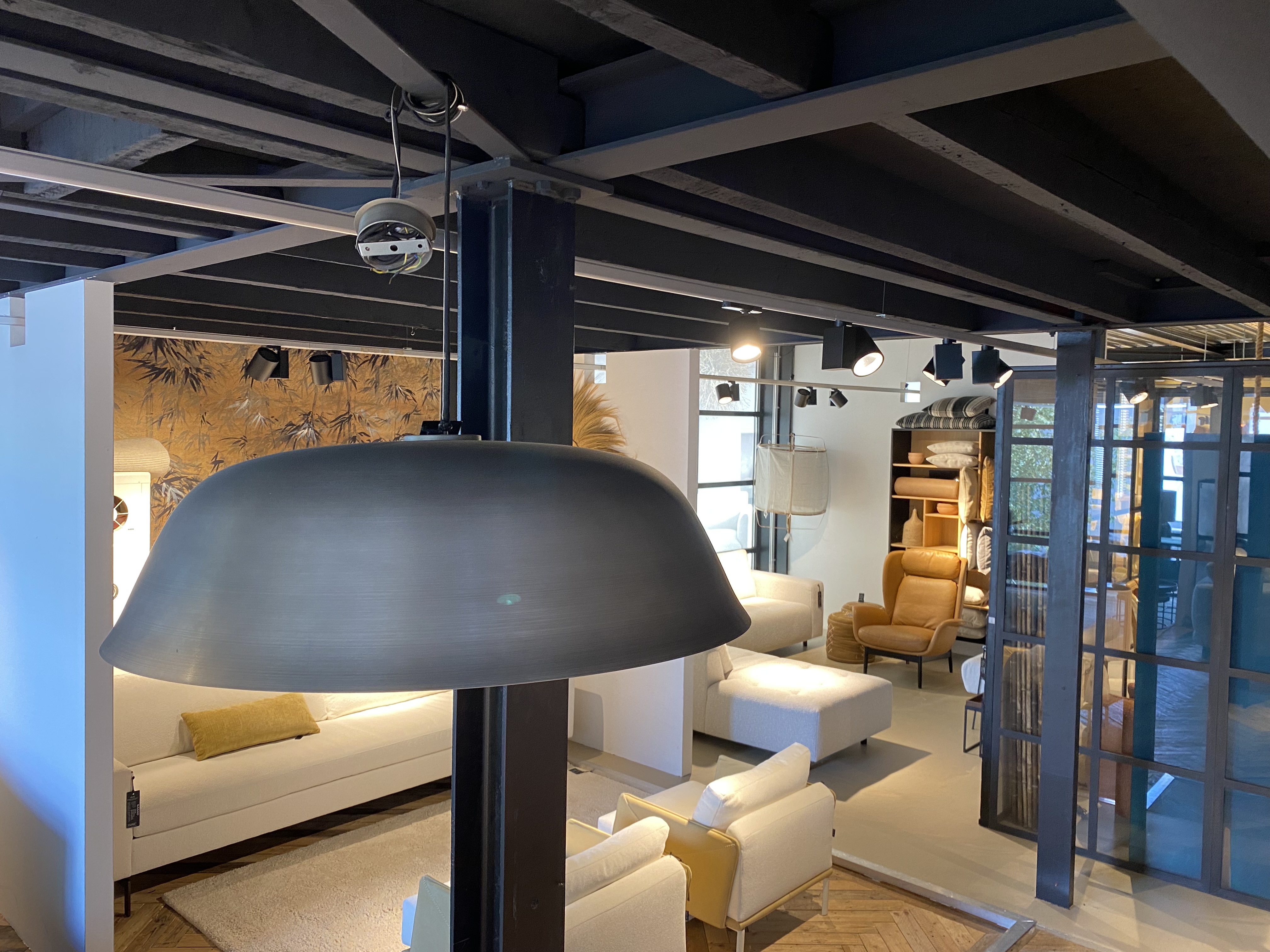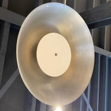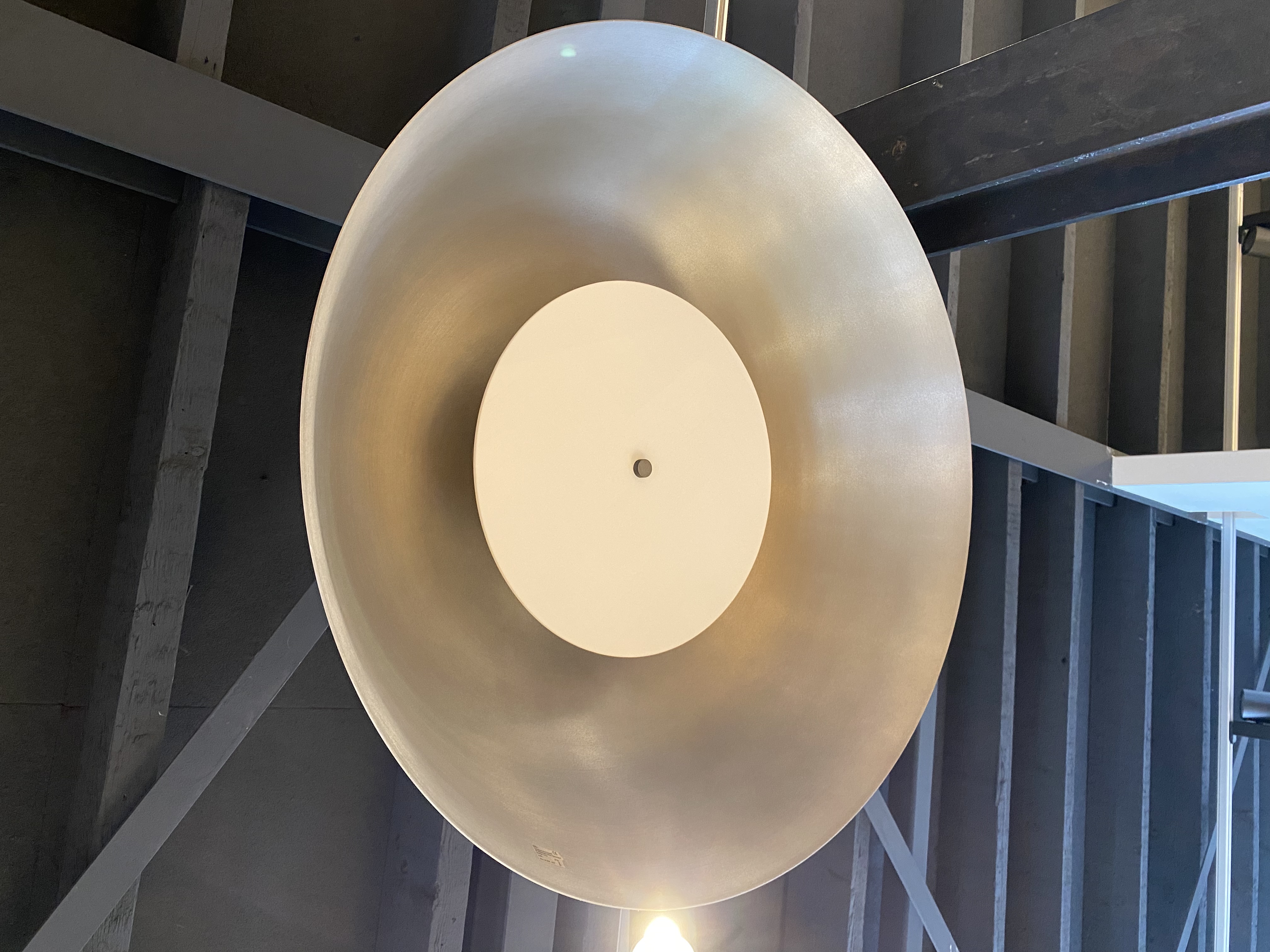Share Cloche hanglamp Sale In onze showroom Amstelveen hangt de Cloche in de SALE. De normale prijs voor deze hanglamp is € 950,- nu voor € 499,-. Brushed aluminium. Info aanvraag Afspraak maken € 499,- Afmetingen diam. 80 cm x hg. 25 cm. Foto’s