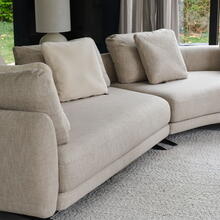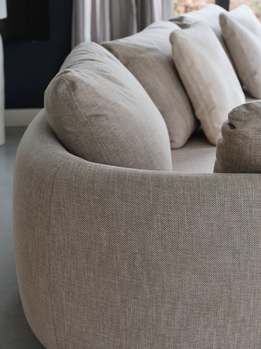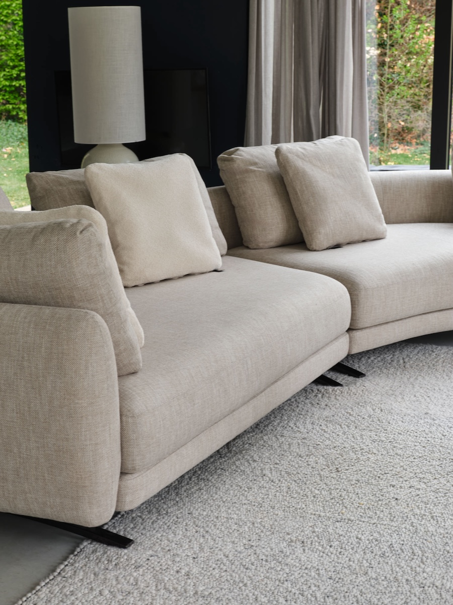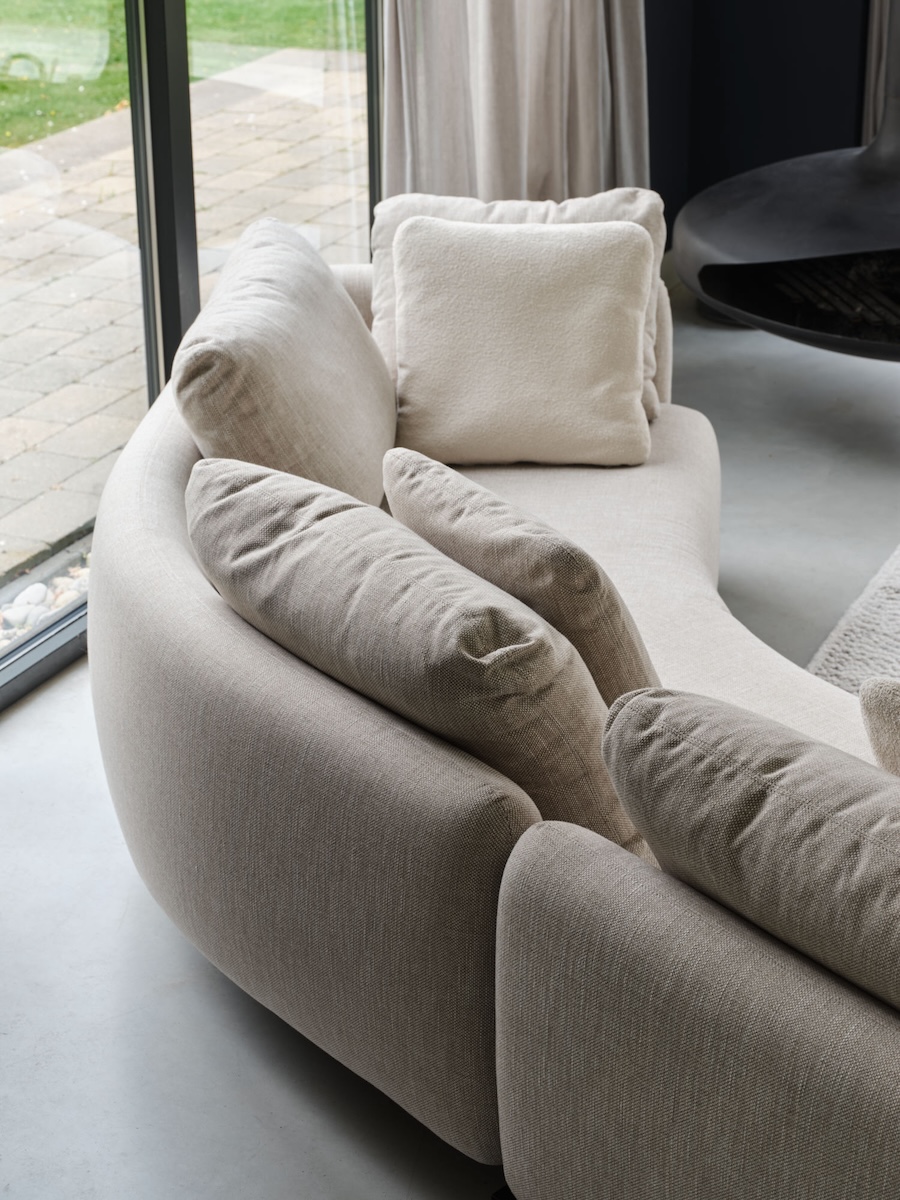 Bank Elaf combineert vloeiende vormen met een gestroomlijnd silhouet. Dit elegante ontwerp is ook nog eens ontzettend comfortabel. De royale ronde elementen zoals op de foto transformeren je interieur, maar model Elaf is ook met rechtere elementen een absolute beauty. Zie foto's voor een voorbeeld in een rechte vorm en klik op de overzichtspagina om alle elementen te bekijken. Laat je adviseren in de showroom wat de beste opstelling in jouw ruimte zal zijn. Leverbaar in ruim 400 stoffen.