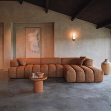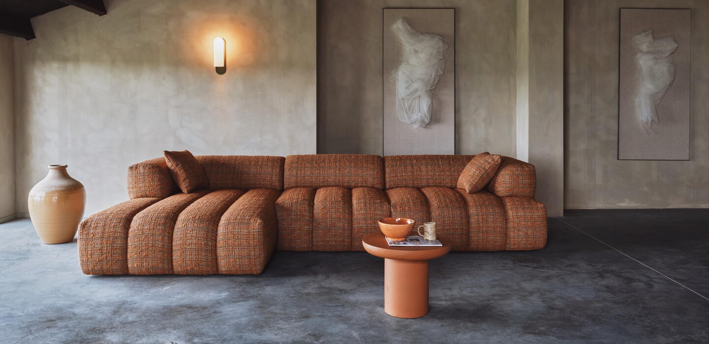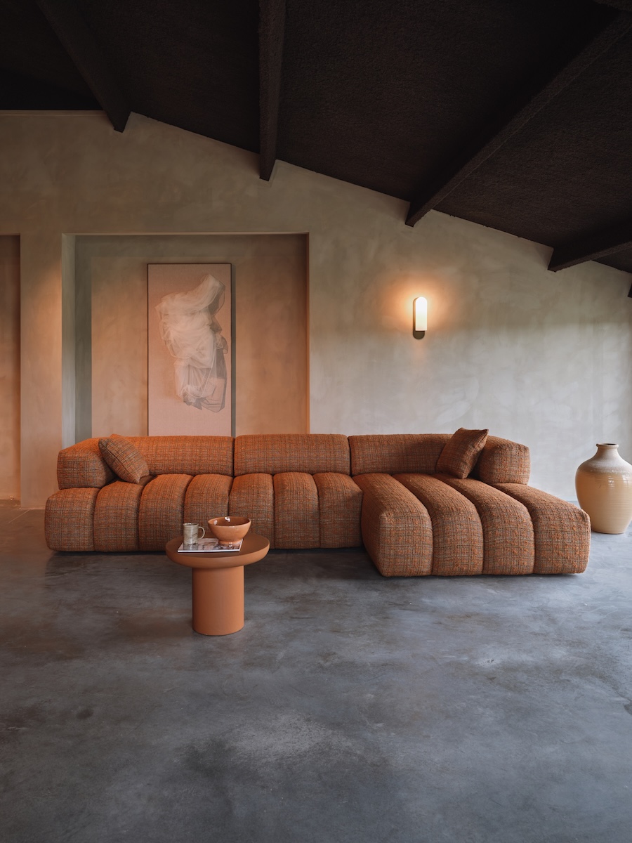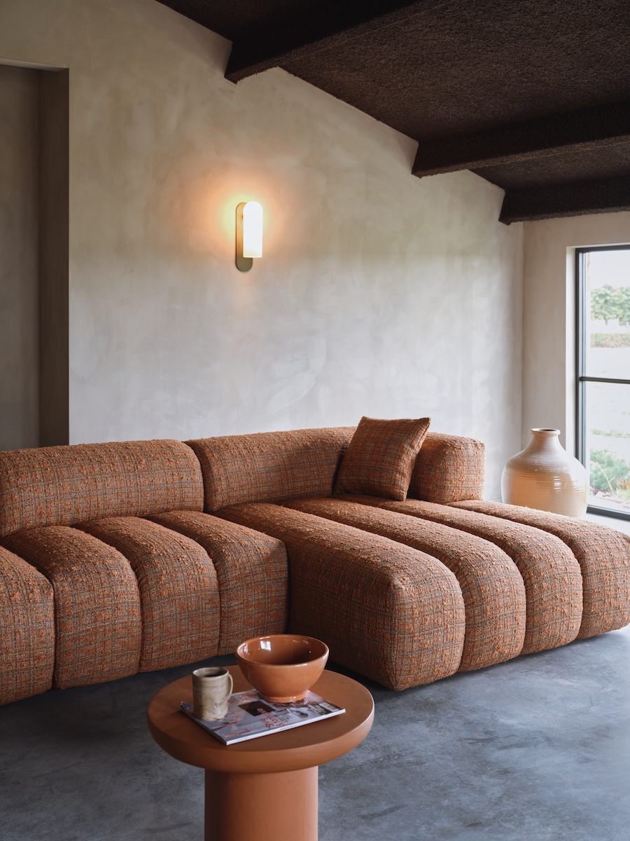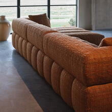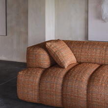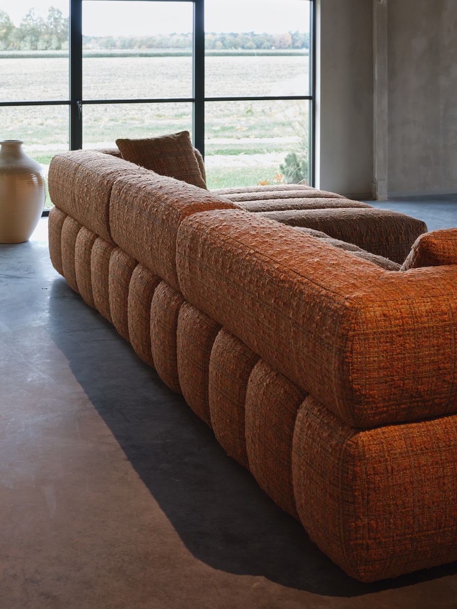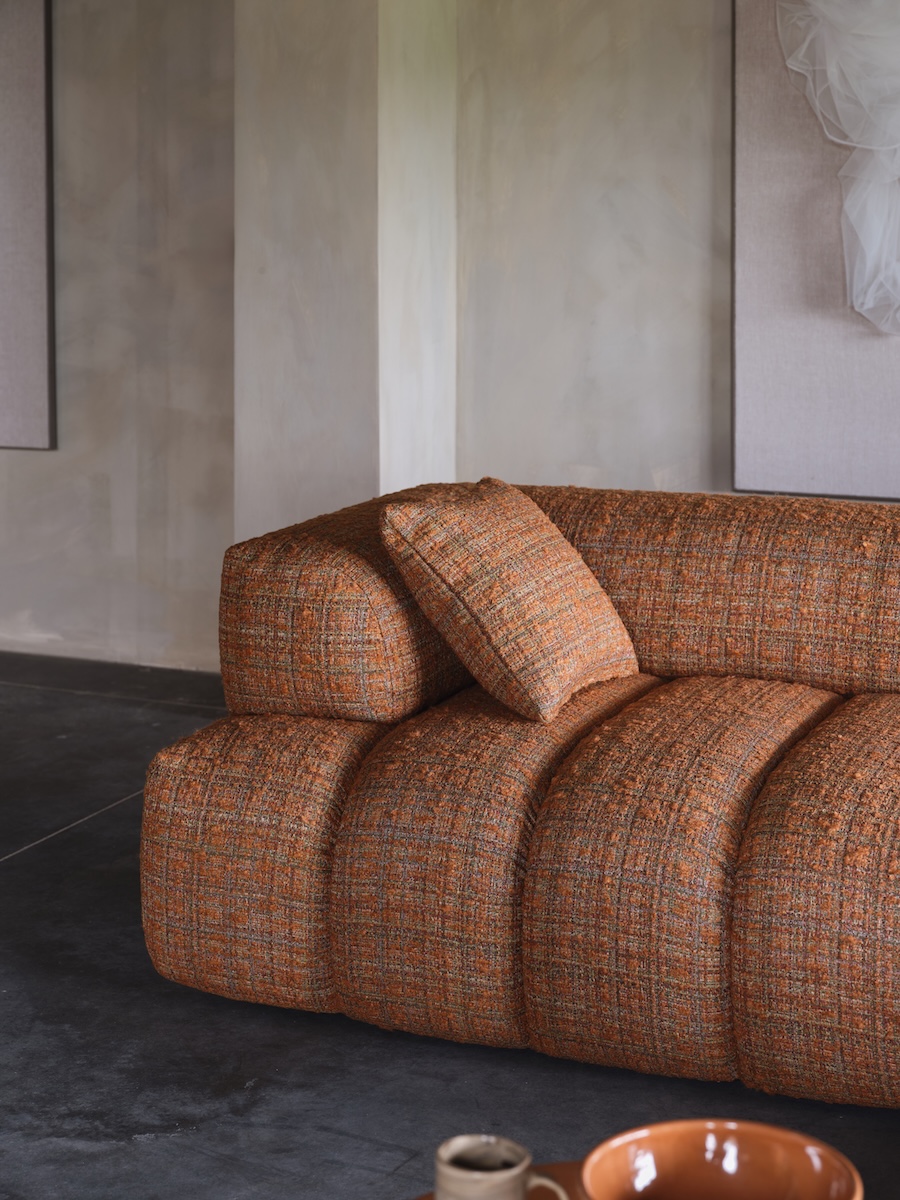 De Mairos bank is een ode aan organische vormen en eigentijdse elegantie. Met zijn royale volumes en ritmische stoffering creëert deze bank een zachte, uitnodigende sfeer in elke ruimte. De bekleding in een warme terracottatint met grovere weefstructuur brengt karakter en diepte, terwijl de horizontale stiksels zorgen voor een verfijnd grafisch effect. De arm is net zo royaal gevuld als de rugleuning; heerlijk om languit tegenaan te liggen. Leverbaar in zeer veel opstellingen, zie overzicht. Beschikbaar in ruim 1000 verschillende stoffen.