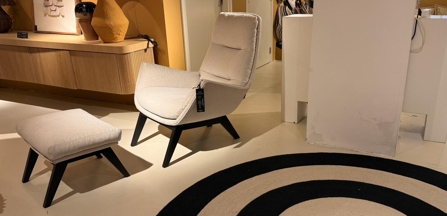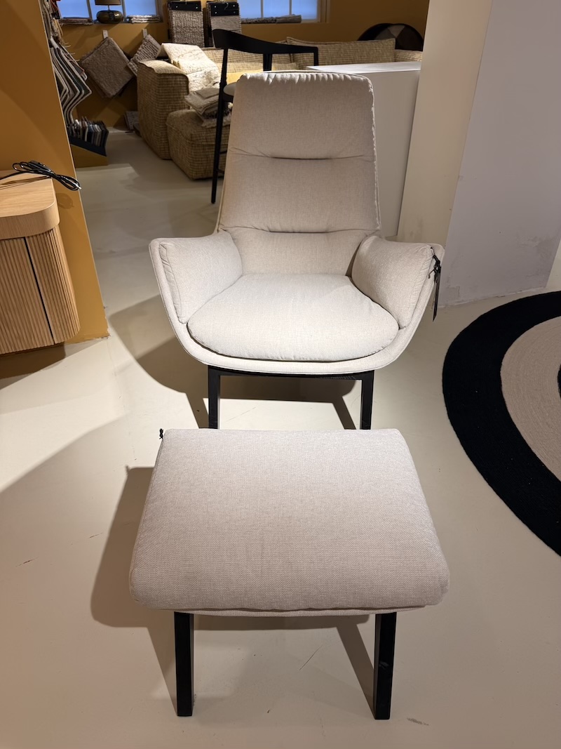 Share August Fauteuil Nu in de Sale: Showroommodel August fauteuil met hocker. Stoffering ecru met zwarte poten. Dit model staat in de showroom Den Bosch Info aanvraag Afspraak maken € 500,- Foto’s