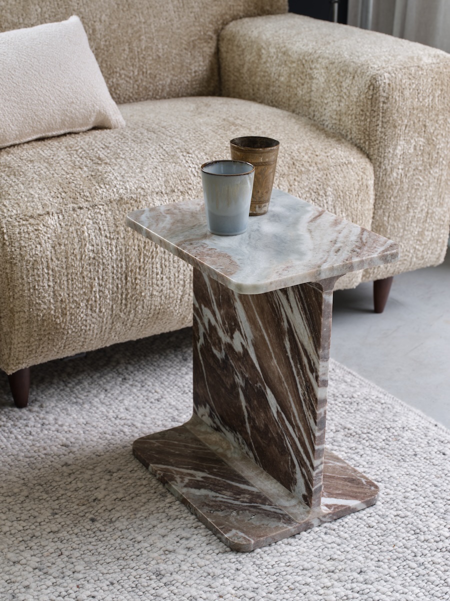 Bijzettafel is gemaakt van massief marmer. Dit zorgt niet alleen voor een zeer exclusieve uitstraling, deze beauty is tevens zeer solide, ondanks z'n gering afmeting. Ook leverbaar in zwart marmer, zie foto's.