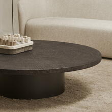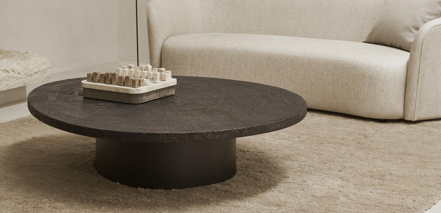 De ronde vorm en massieve uitstraling zorgen voor balans en harmonie, terwijl het ambachtelijk materiaal elke tafel uniek maakt. Ook kleiner leverbaar: 90 diameter x 35 hoog € 759,-